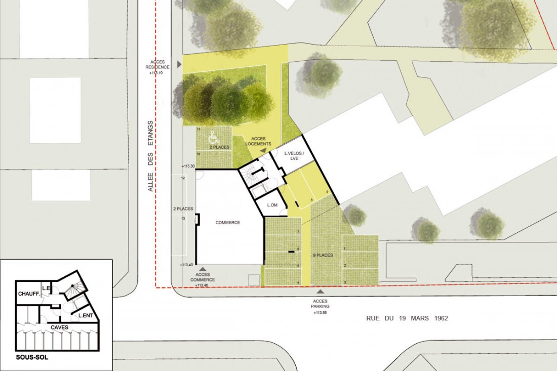 - Programme : 11 logements collectifs, commerces, espaces verts et parking